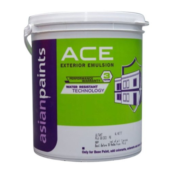 Asian Paints presents Ace Exterior Emulsion which is a water-based exterior wall finish with silicon additives suitable for dry to moderate humid weather conditions.